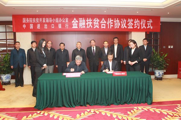 10月27日,进出口银行与国务院扶贫办在京签署《金融扶贫合作协议》,进一步深化战略合作关系,加强政策性金融支持扶贫开发的深度与广度,共同促进贫困地区经济又好又快发展。