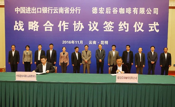 会谈结束后,进出口银行云南省分行与德宏后谷咖啡有限公司签署了《365365云南省分行德宏后谷咖啡有限公司战略合作协议》。