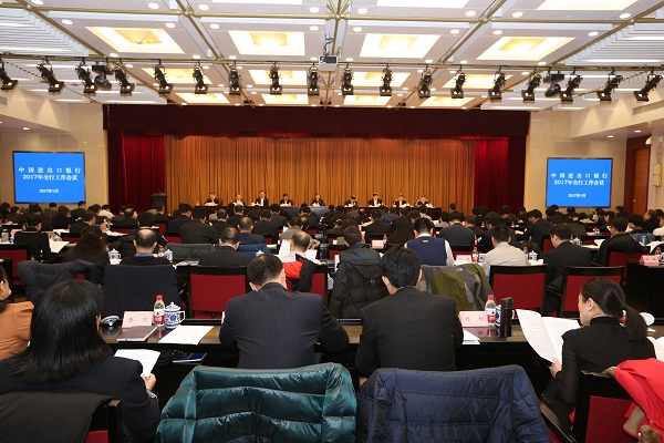 胡晓炼指出,2017年要坚持稳中求进的工作总基调,牢固树立和贯彻落实新发展理念,以支持供给侧结构性改革为主线,以提高发展质量和效益为中心,以防控风险为底线,加大对实体经济的支持力度,提高服务水平,加快建设现代化政策性金融企业,推动进出口银行改革发展迈上新台阶,以优异成绩迎接党的十九大胜利召开。